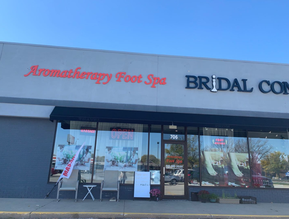 Aromatherapy Foot Spa, is a massage spa designed to help you reduce stress, relieve build up chronic pain, and increase the overall quality of your life! We specialize in multiple affordable, customized treatments to meet the needs of a wide variety of clients in a peaceful setting! We are proud to be providing Authentic Massage therapy services in our beloved community of Ankeny, IA! Our Professional Staff are perfect To help you relax after a long stressful day of work! Here at Aromatherapy Foot Spa we are Providing a Modern Atmosphere that will make your every visit highly satisfying and give you a new rejuvenated self! Come in and visit today, you can call us now to Create your appointment, or feel free to walk in!