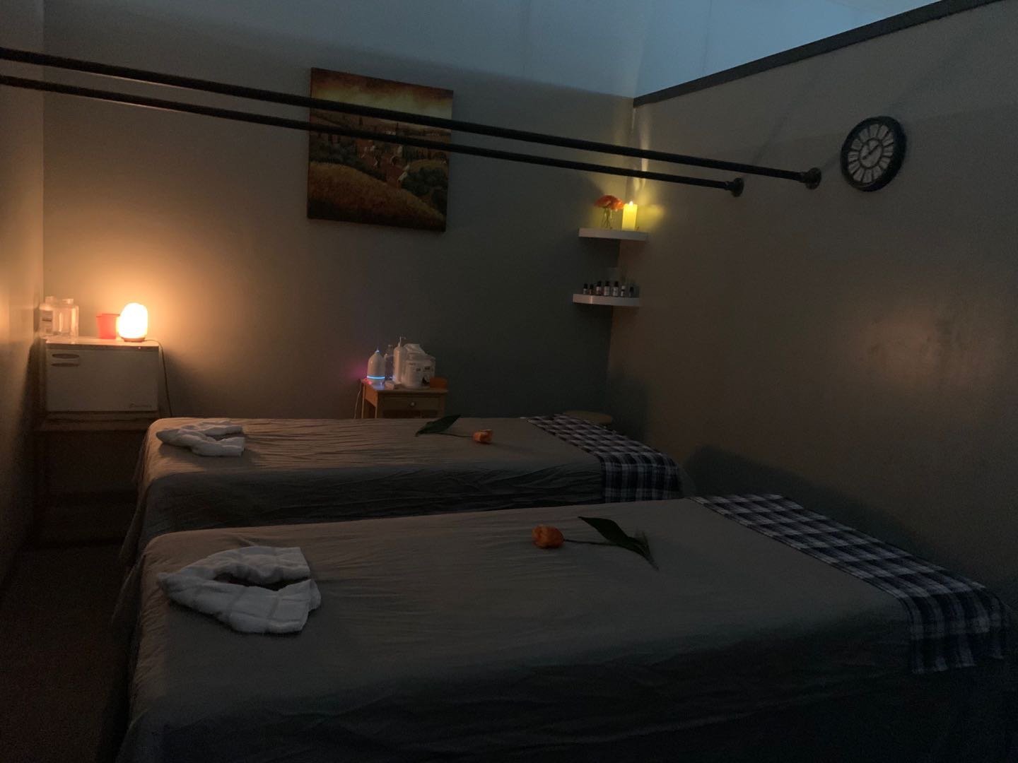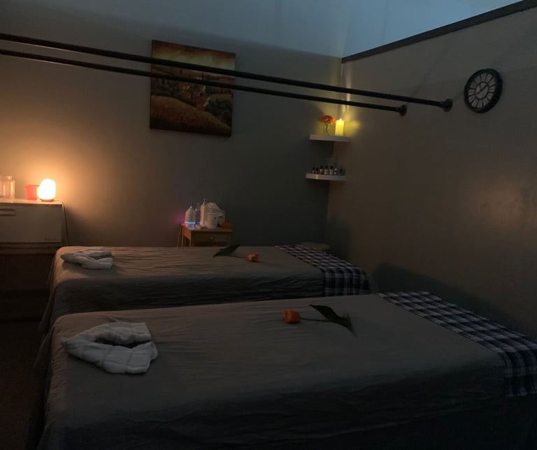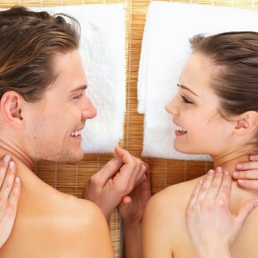 A relaxing massage experience for two people performed in the same room, perfect for partners or friends.